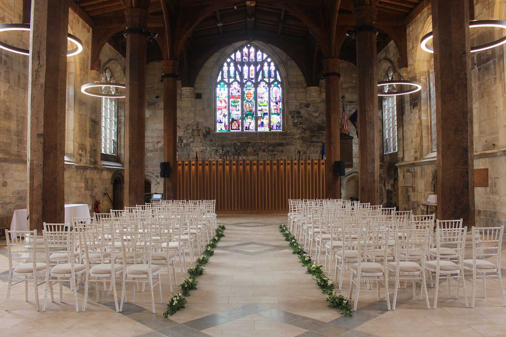 Exclusively yours, The Guildhall is a breathtaking backdrop to your special day, which caters for up to 120 guests.